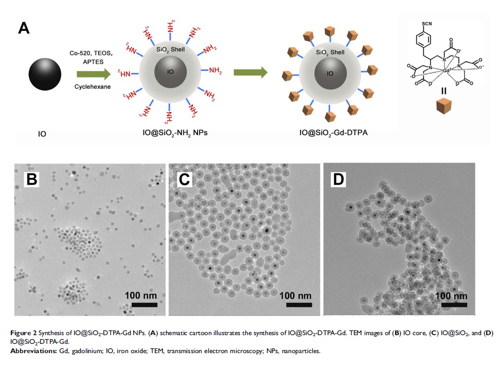 使用二氧化硅涂层磁铁矿纳米粒子改善钆螯合物的纵向横向弛豫