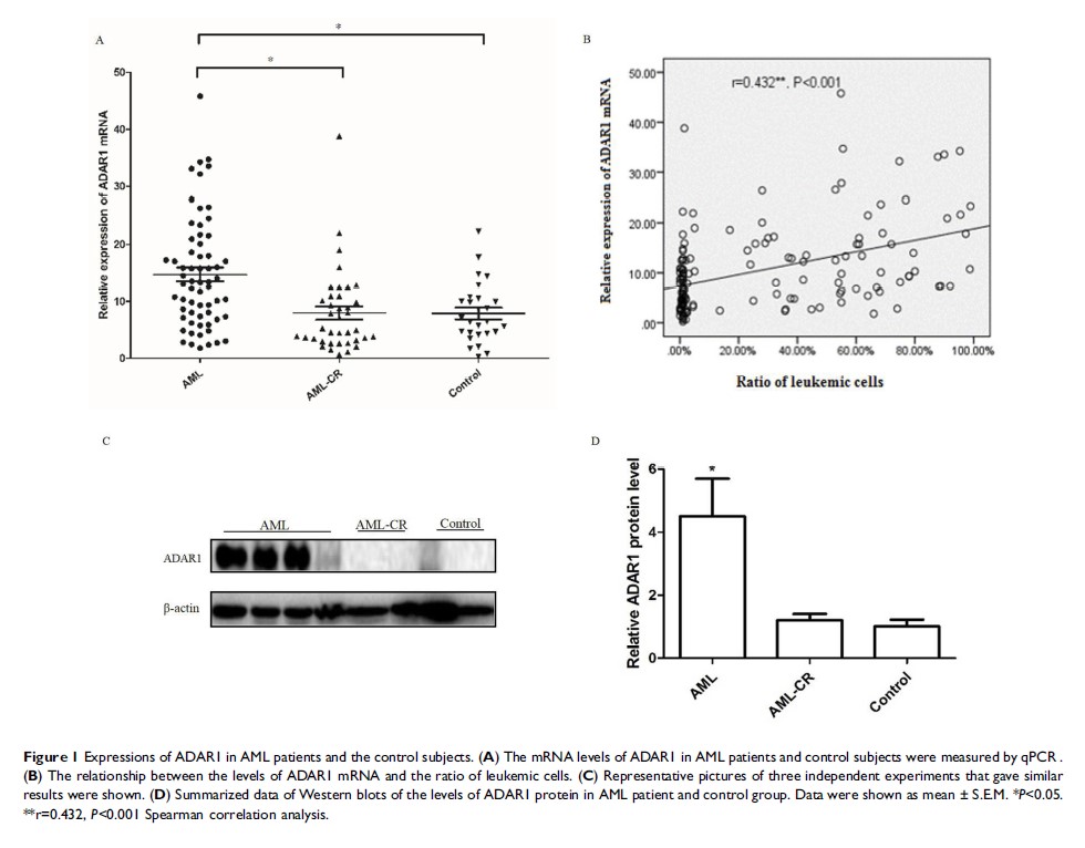 ADAR1 可能通过对 Wnt 信号通路的调节而参与急性髓性白血病细胞的增殖