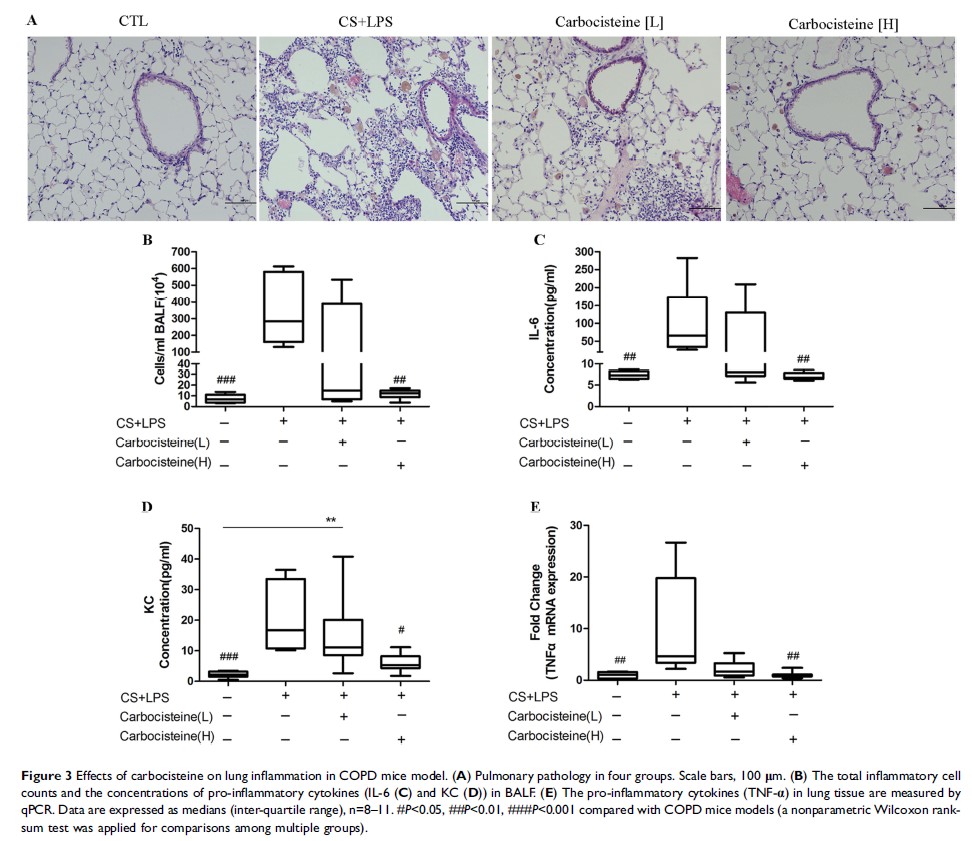 羧甲司坦抑制 COPD 小鼠模型中 Muc5b 的表达