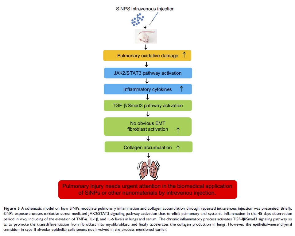 反复静脉注射二氧化硅纳米颗粒可在体内通过 JAK2/STAT3 和 TGF-β/Smad3 通路诱导肺部炎症和胶原蛋白积聚