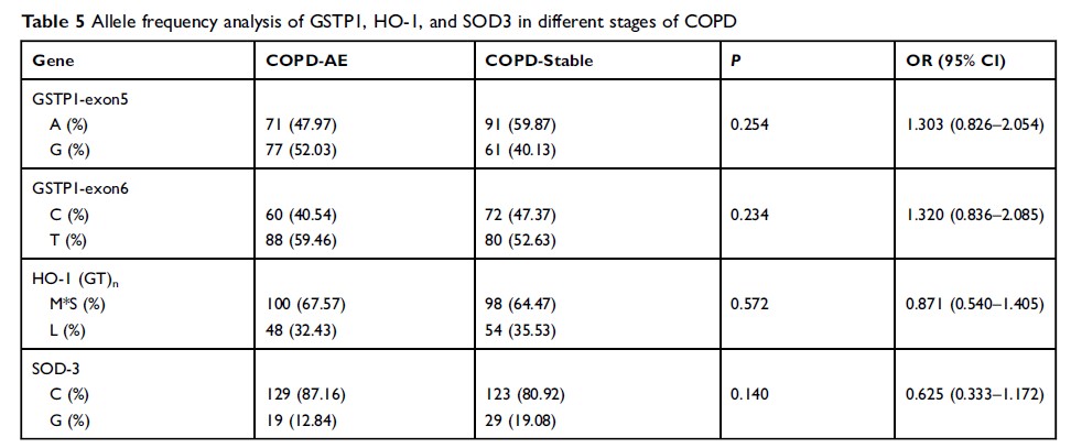 GST、HO-1 和 SOD-3 基因多态性与 COPD 易感性的相关性研究
