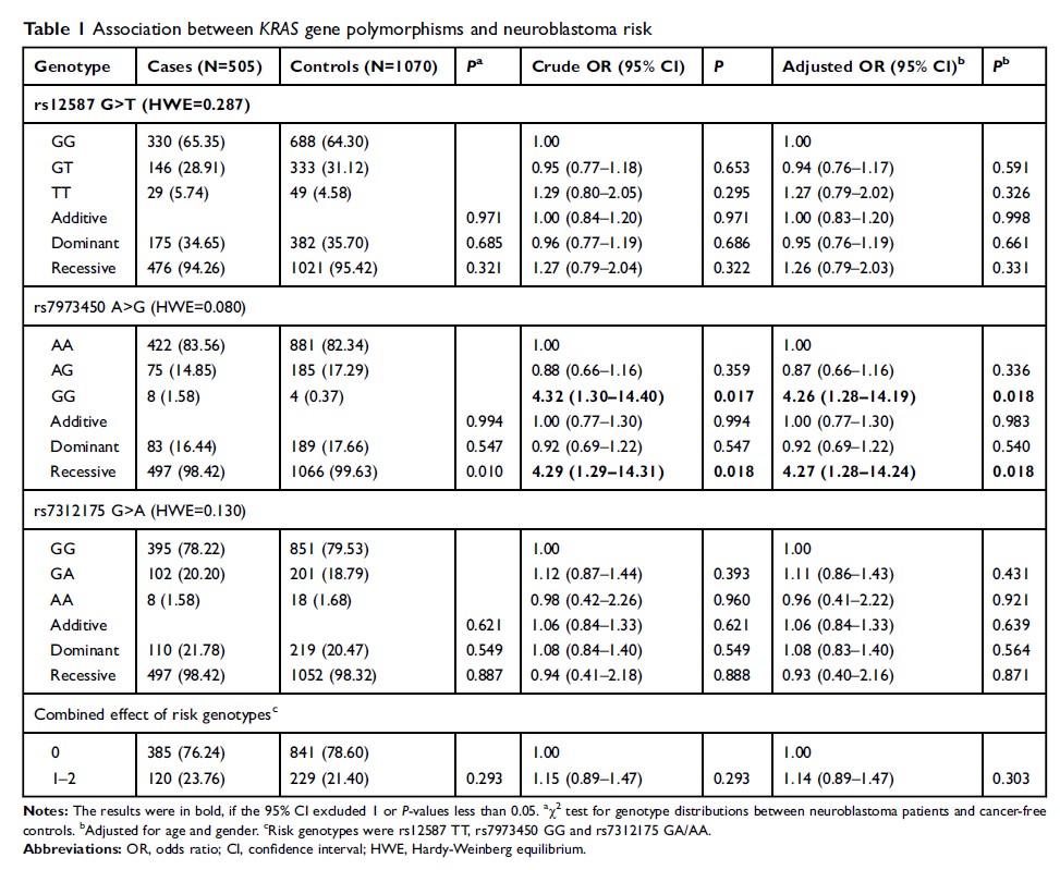 KRAS rs7973450 A>G 增加中国儿童神经母细胞瘤的风险:一项四中心病例对照研究