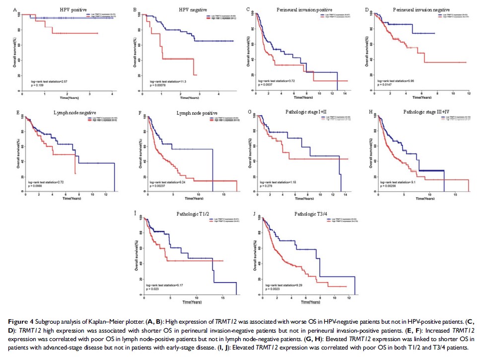TRMT12 的过表达可能单独用于预测头颈部鳞状细胞癌患者的总体生存不良