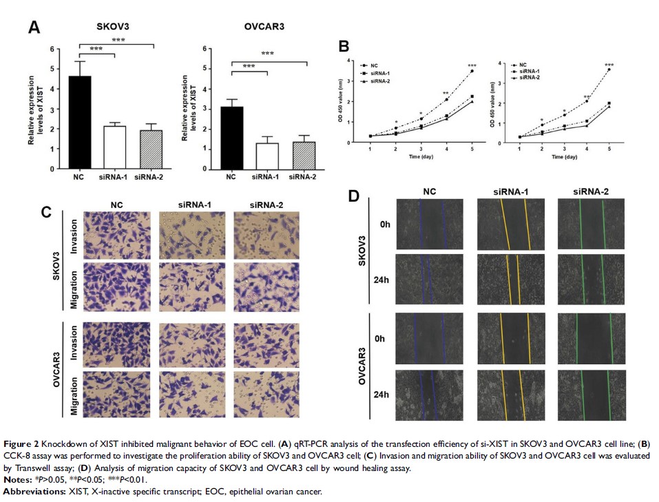 长非编码 RNA XIST 可促进上皮性卵巢癌的恶性行为