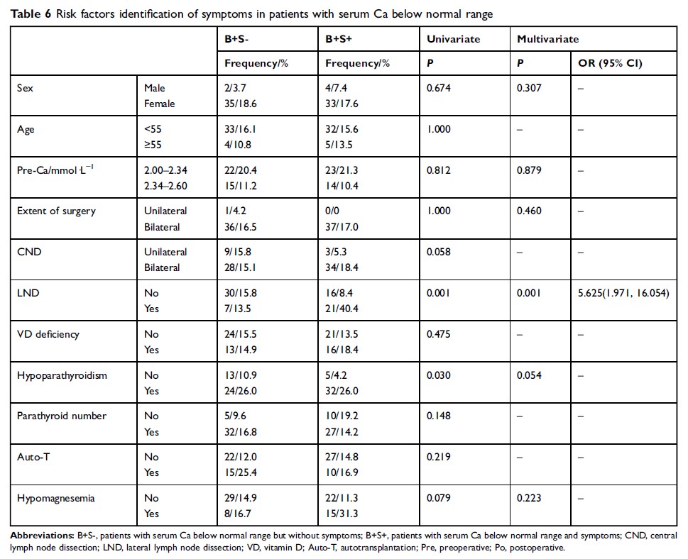 镁血症:甲状腺切除术后低钙血症的独立危险因素