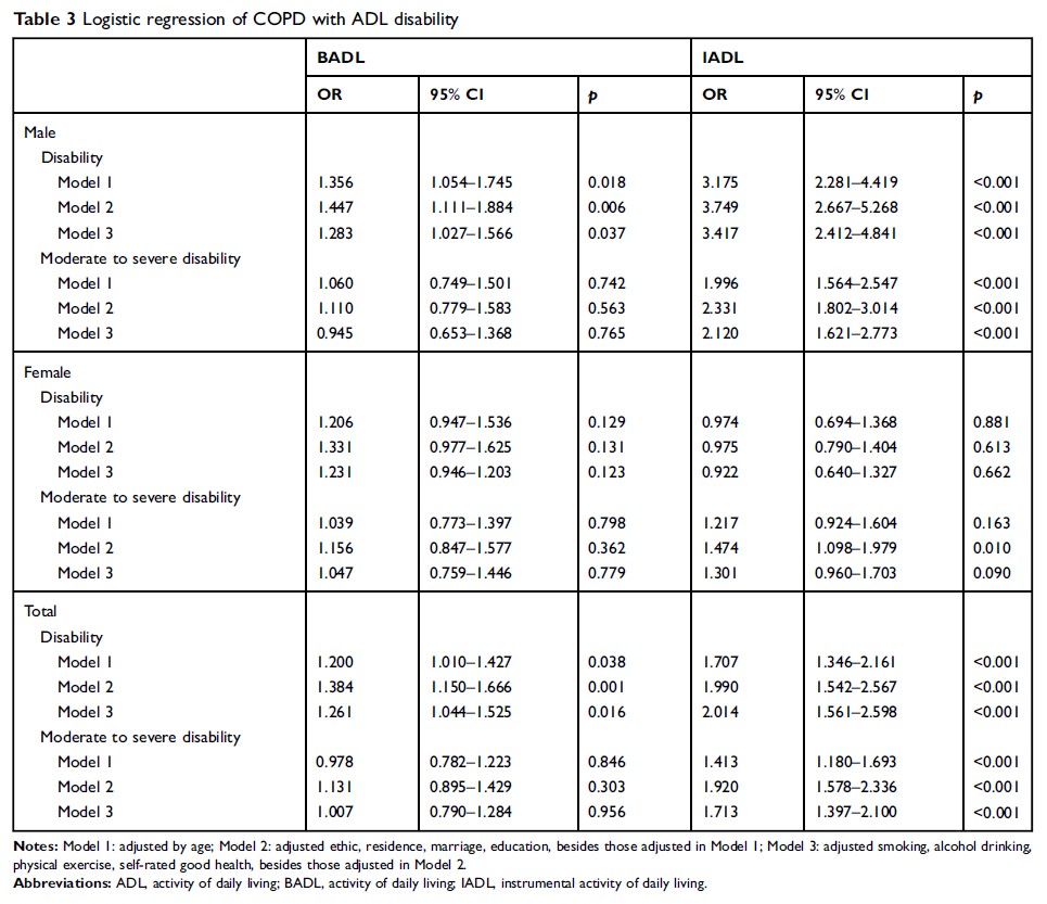 中国老年人的日常生活活动与慢性阻塞性肺疾病之间的关联:基于中国健康预期寿命纵向调查
