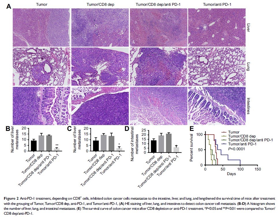 PD-1 抑制剂依赖性 CD8+ T 细胞可遏制小鼠结肠癌细胞的转移