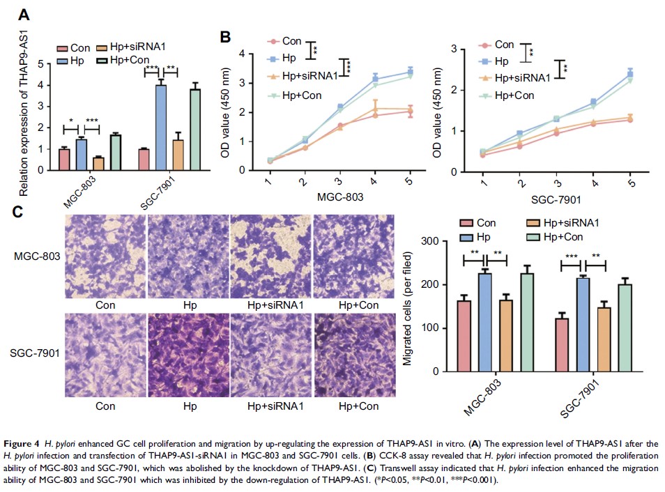 由幽门螺杆菌诱导的长链非编码 RNA THAP9-AS1 可促进胃癌细胞生长和迁移
