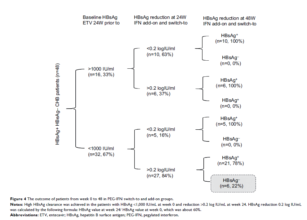恩替卡韦添加或转换为聚乙二醇化干扰素可改善 HBe 抗原阴性慢性乙型肝炎患者的 HBsAg 清除率