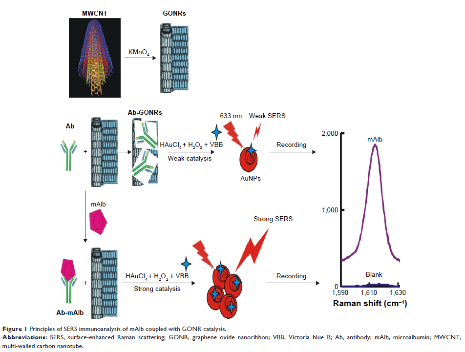 SERS 检测新策略用于以免疫识别和氧化石墨烯纳米带催化为基础的微量白蛋白尿定量分析