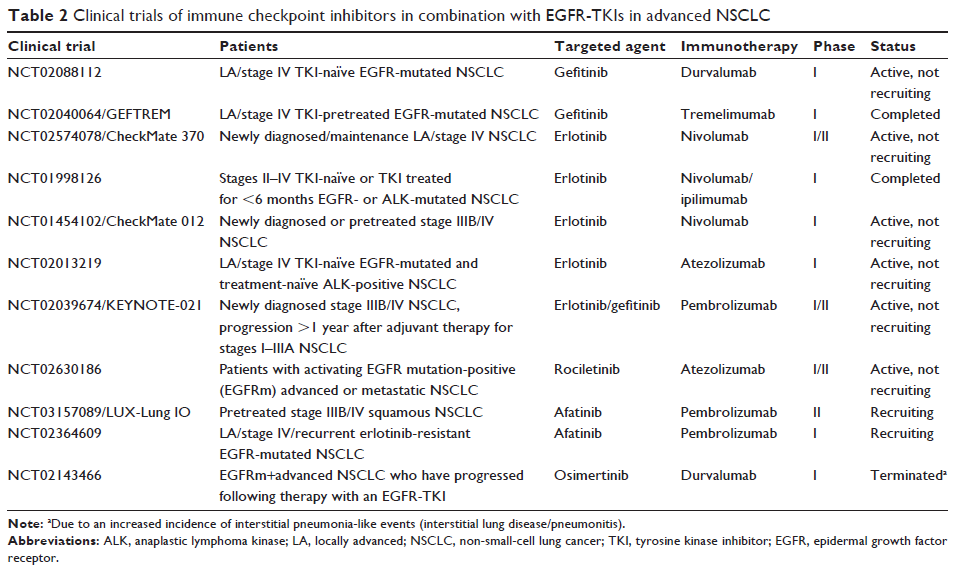 免疫疗法结合表皮生长因子受体-酪氨酸激酶抑制剂用于治疗非小细胞肺癌