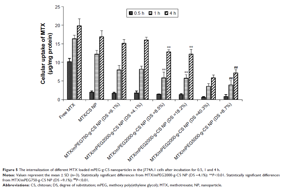 PEG 表面密度和链长对甲氨蝶呤壳聚糖纳米粒的药代动力学和生物分布的影响