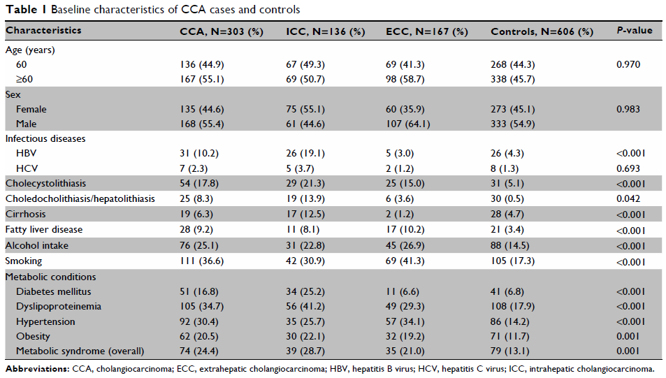 代谢综合征和胆管癌的风险:在中国进行的一项基于医院的病例对照研究
