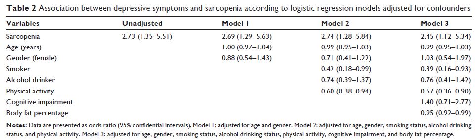 中国老年社区居民抑郁症状与肌肉减少症的关系