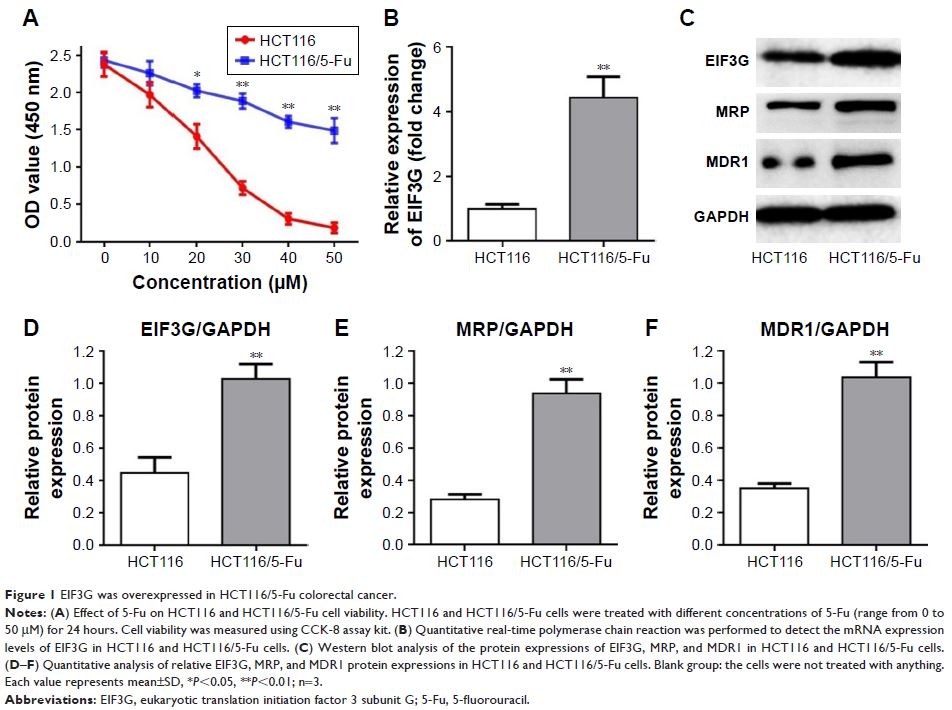 真核翻译起始因子 3 亚基 G(EI F3G)通过抑制 MRP 和 MDR1 将 HC T116/5-Fu 重新敏化为 5-氟尿嘧啶(5-Fu)