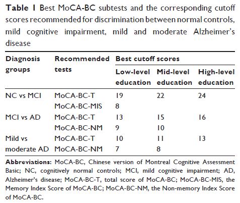 应用中文版蒙特利尔认知评估基础量表区分阿尔茨海默症的严重度
