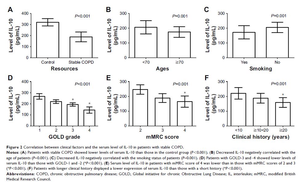 血清 IL-17 水平增加,以及血清 IL-10 和 IL-35 水平降低与 COPD 的进展相关